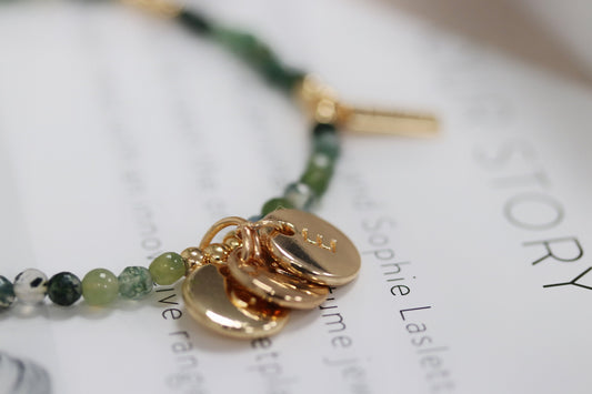 Personalised Teacher Gift, Initial Charm Bracelet, Stretch Natural Beads Bracelet, Stackable Dainty Bracelets, May Birthday Gift for Her