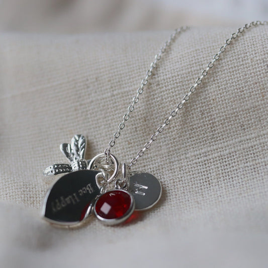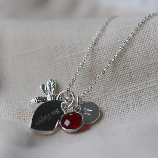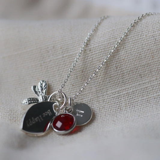 Silver Key Necklace: Personalized Birthstone Initial Charm