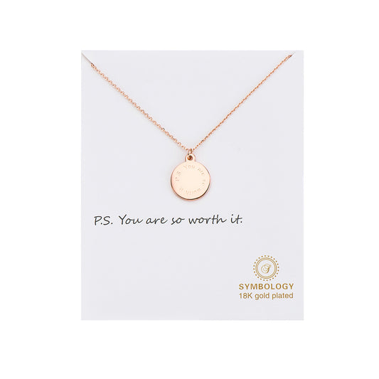 You Worth Pendant Necklace, Dainty Sliver Coin Disc Necklace, Symbology Sentiment, PS I love you, Anniversary, Girlfriend Gift (Gift boxed)