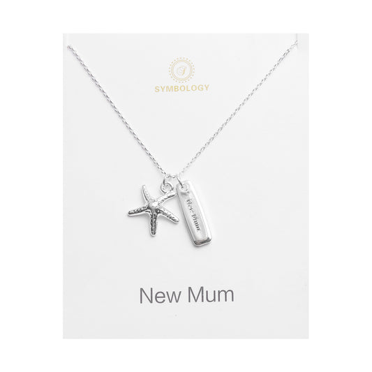 Sterling Silver Starfish Necklace: New Mum Charm, Birthstone Pendant