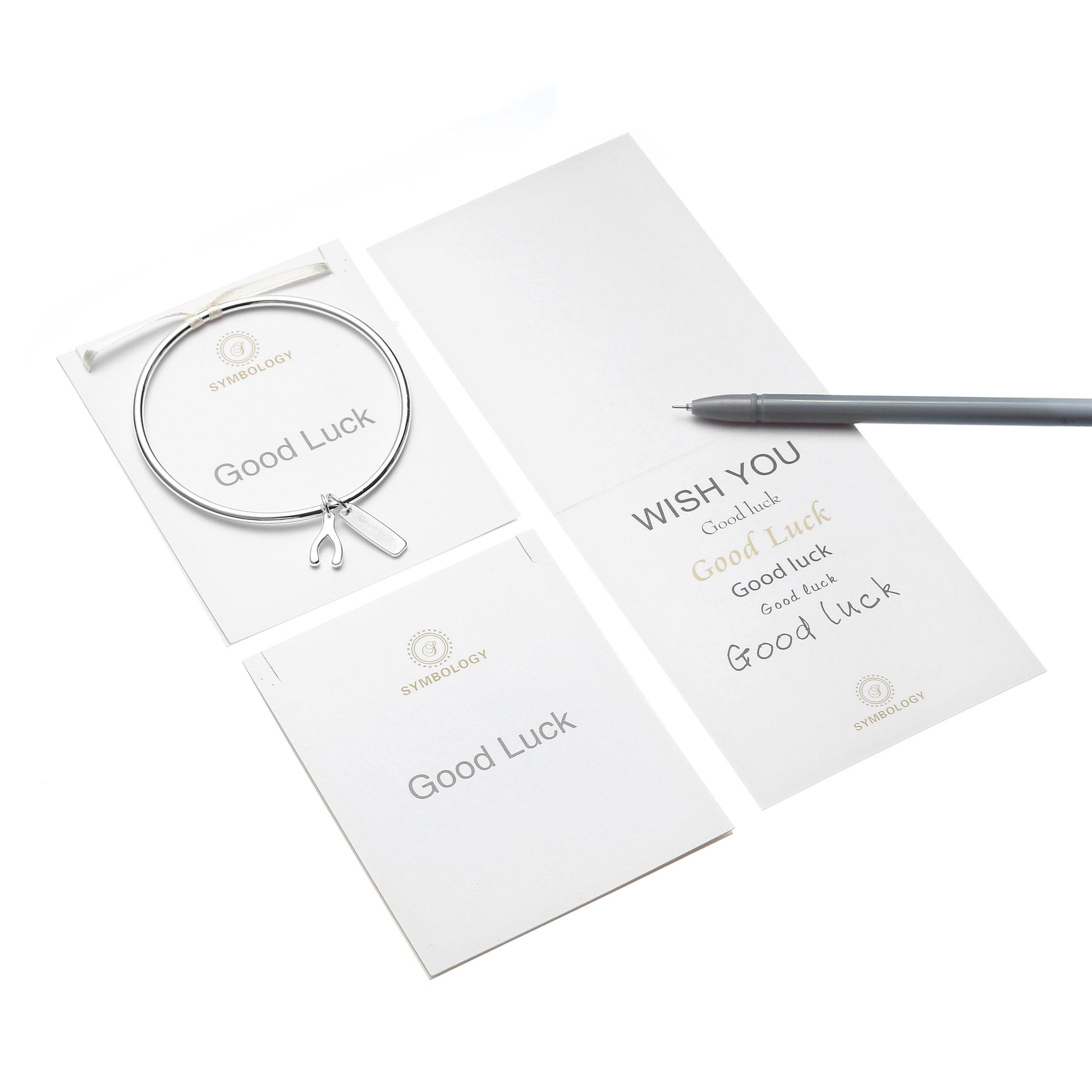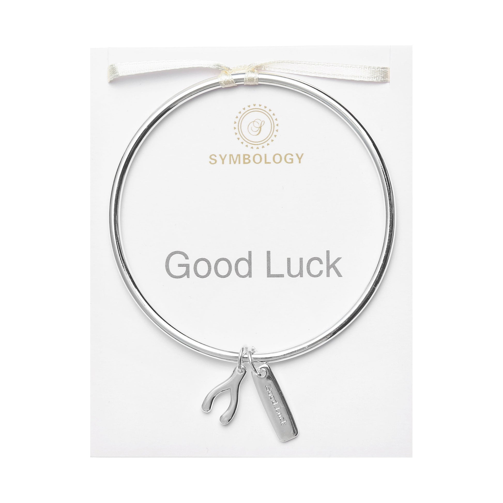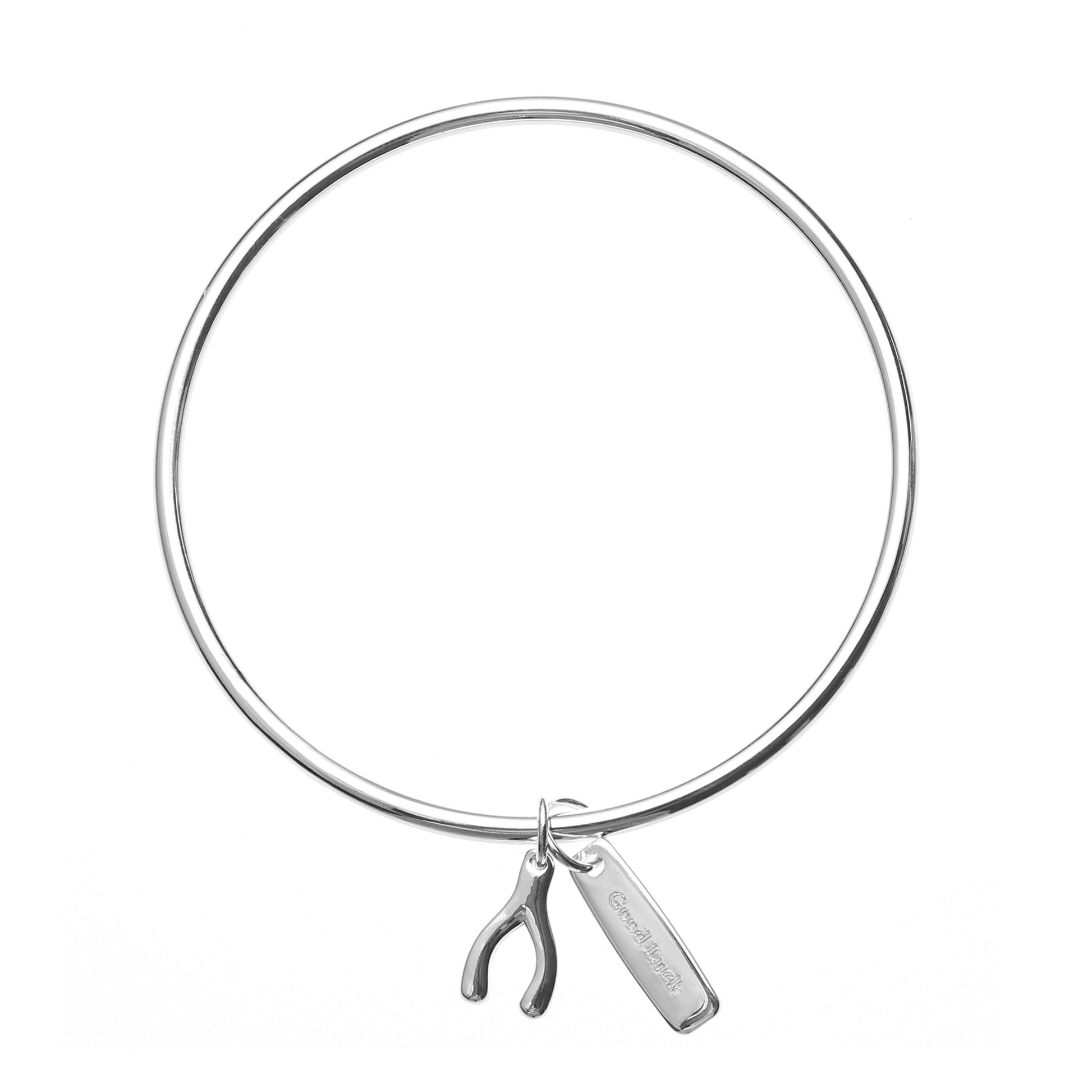 This beautiful silver plated bangle comes with a Wish Bone symbol and ' Good Luck' tag charm. It paired with a simple and beautiful card with the same message. It is both sentimental and stylish, making this the perfect gift for someone special or a treat for yourself.